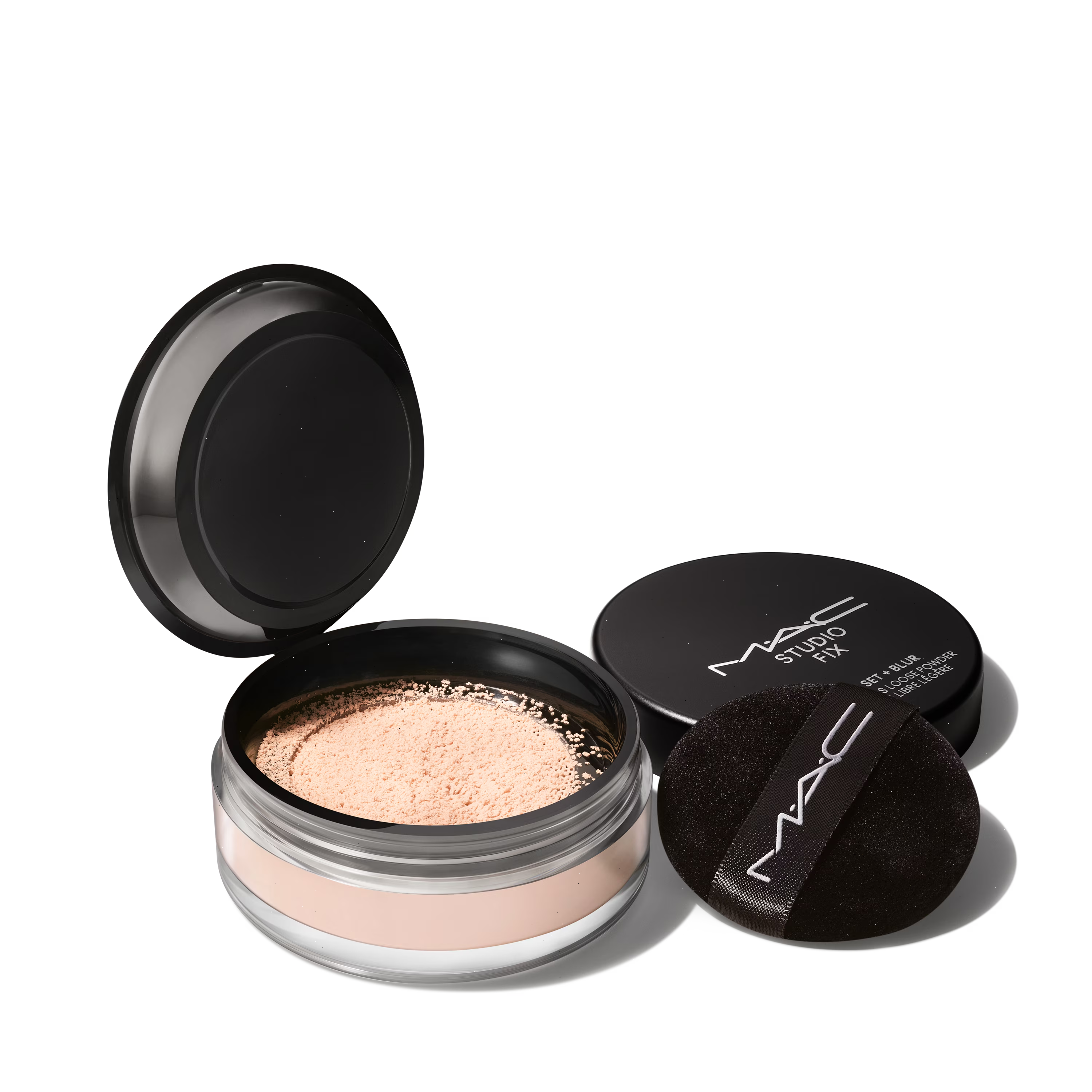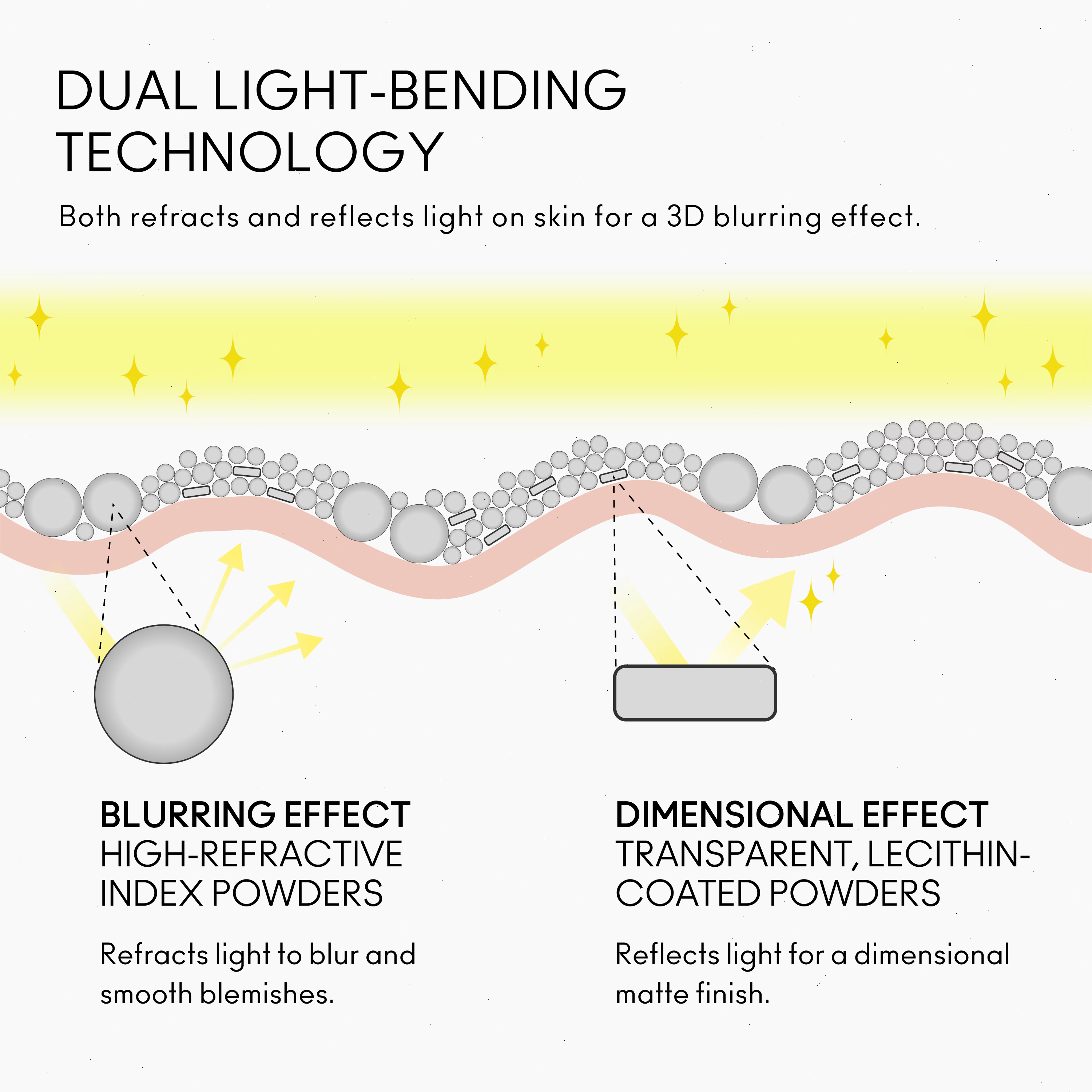 - Lightweight, ultra-refined powder sets makeup