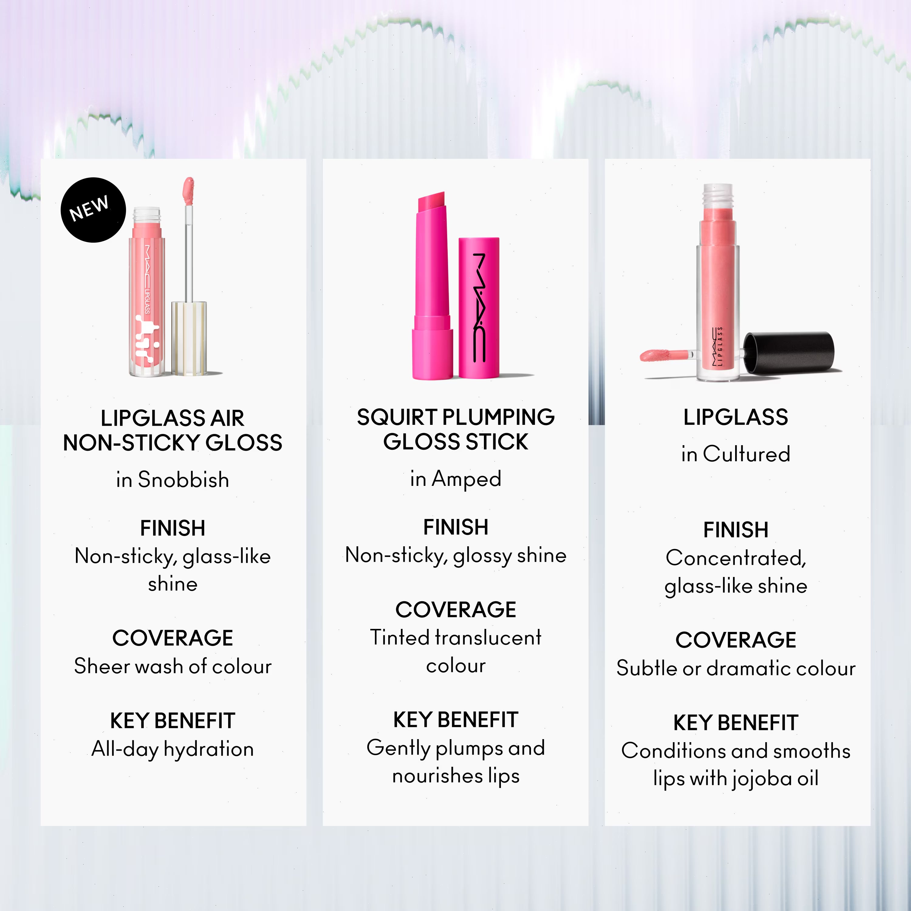 A non-sticky, high-shine lip gloss that hydrates lips all day...