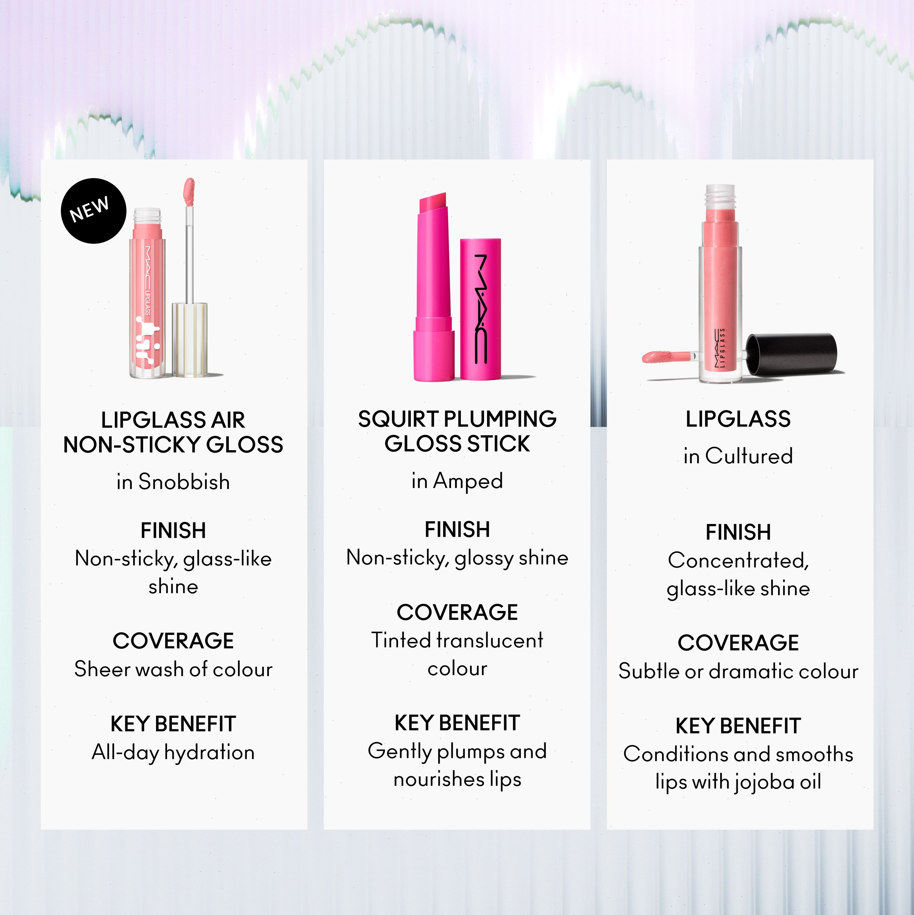 - Non-sticky, glass-like shine